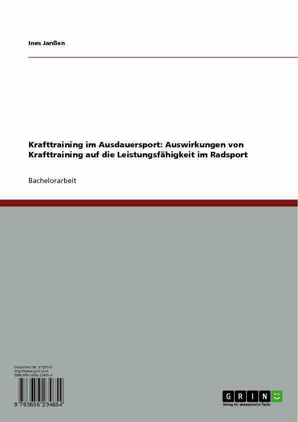 Die vorliegende Bachelorarbeit beschreibt diese Problematik bzw. konkret die Auswirkungen von Krafttraining auf die Leistungsfähigkeit anhand des Radsports.