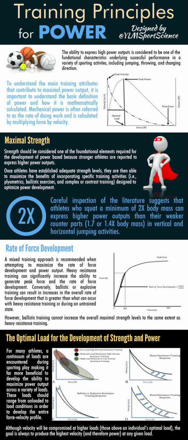 The ability to express high power outputs is considered to be one of the foundational characteristics underlying successful performance in a variety of sporting activities, including jumping, throwing, and changing direction. Numerous training interventions have been recommended to enhance the athlete's ability to express high power outputs and improve their overall sports performance capacity. This brief review examines the factors that underlie the expression of power and various methods that can be used to maximize power development.