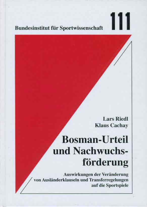 Das Ende 1995 vom Europäischen Gerichtshof gefällte Bosman-Urteil hat in den zurückliegenden Jahren spürbare Veränderungen in den Mannschaftssportarten der Länder der Europäischen Union verursacht. Mit der von Riedl und Cachay vorgelegten Arbeit wird ein wichtiger Aspekt beleuchtet, der sowohl aktuelle als auch perspektivische Bedeutung besitzt: Welche Auswirkungen ergeben sich aus dem Bosman-Urteil für die Nachwuchsförderung in den leistungssportlich engagierten Vereinen und für die einzelnen Nachwuchssportler hinsichtlich ihrer sportlichen Laufbahn. Abgeleitet davon werden aber auch mögliche Auswirkungen für nationale Auswahlmannschaften untersucht. Dabei werden verschiedene Sichtweisen betrachtet: die des Verbandes in seiner Verantwortung für die Auswahlmannschaft, die der Vereine in ihrer Verantwortung für ihre Bundesligamannschaften und die der Spieler, die die Auswahl- und/oder Bundesligamannschaft als ihre Ziele betrachten und auf dem Weg dorthin gezielt und seriös gefördert werden müssen.