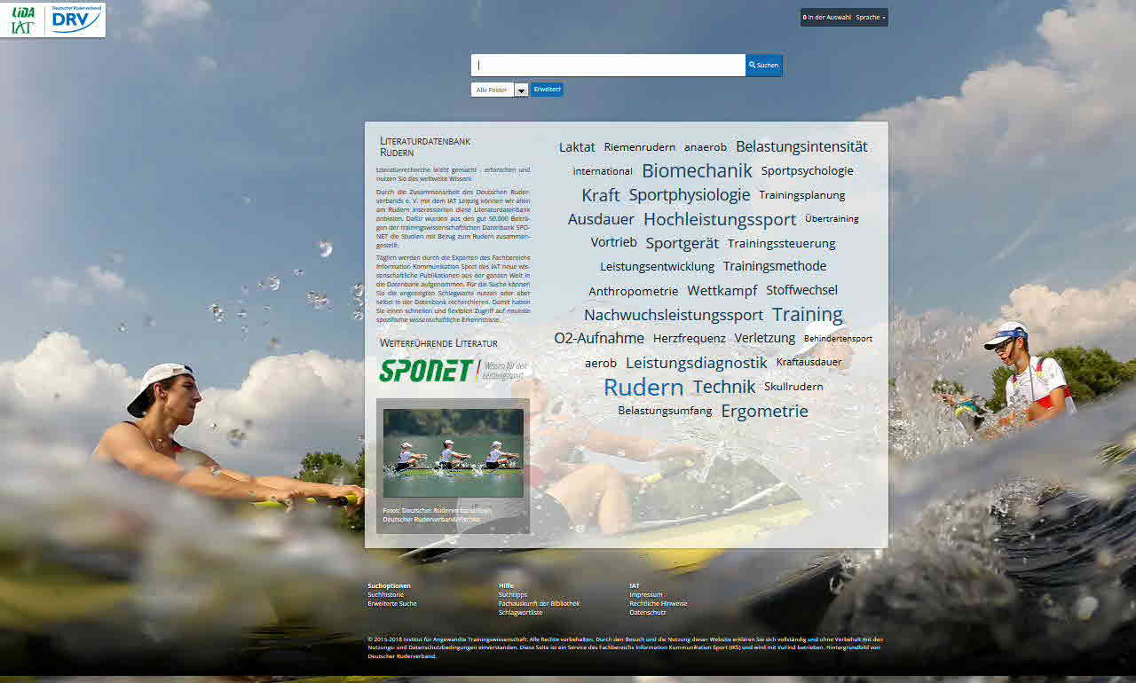 Durch die Zusammenarbeit des Deutschen Ruderverbands mit dem IAT Leipzig können wir allen Interessierten am Schwimmen diese Literaturdatenbank anbieten. Dafür wurden aus den gut 50.000 Beiträgen der trainingswissenschaftlichen Datenbank SPONET die Studien mit Bezug zum Rudern zusammengestellt.