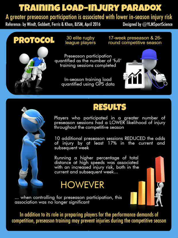 Training load--injury paradox: is greater preseason participation associated with lower in-season injury risk in elite rugby league players?