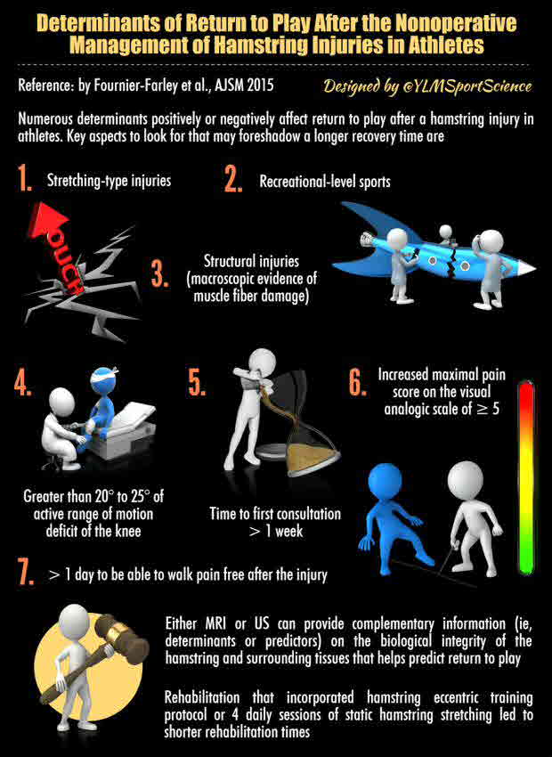 Conclusion: Numerous determinants have an effect on return to play after a hamstring injury in athletes. It is important for sports professionals to be aware of those determinants to guide athletes through the rehabilitation process and refine return-to-play strategies