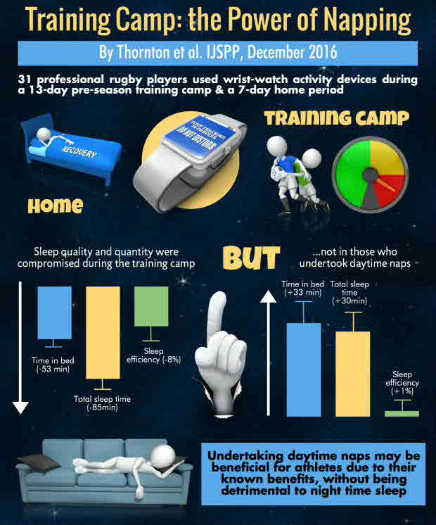 Conclusions: Sleep quality and quantity may be compromised during training camps; however, daytime naps may be beneficial for athletes due to their known benefits, without being detrimental to nighttime sleep.