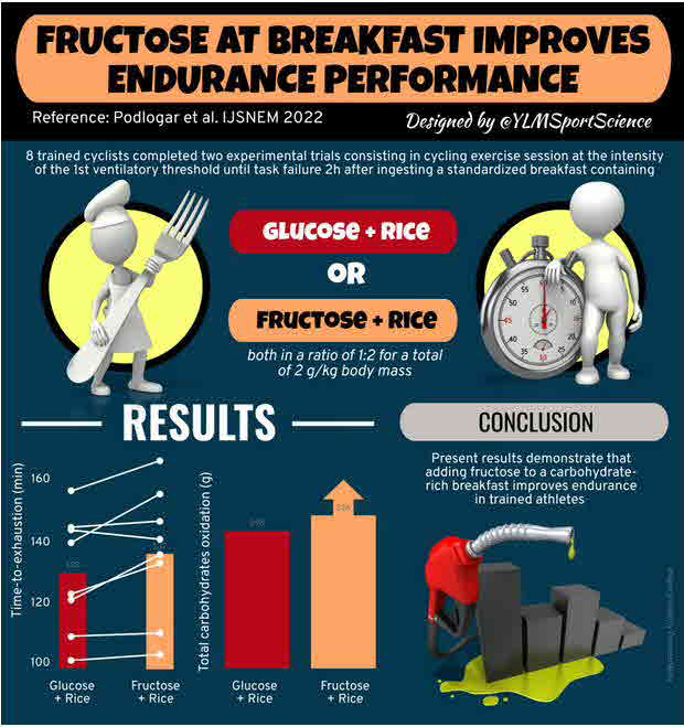 (Die Zugabe von Fruktose zu einem kohlenhydratreichen Frühstück verbessert die Ausdauerleistung bei trainierten Radfahrern)