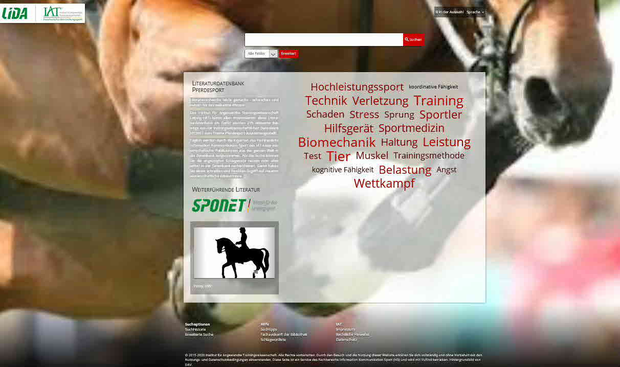 Das Institut für Angewandte Trainingswissenschaft Leipzig (IAT) bietet allen Interessierten diese Literaturdatenbank an. Dafür wurden alle relevanten Beiträge aus der trainingswissenschaftlichen Datenbank SPONET zum Thema Pferdesport zusammengestellt.