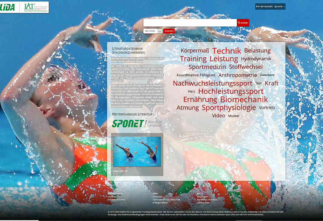 Das Institut für Angewandte Trainingswissenschaft Leipzig (IAT) bietet allen Interessierten diese Literaturdatenbank an. Dafür wurden alle relevanten Beiträge aus der trainingswissenschaftlichen Datenbank SPONET zum Thema Synchronschwimmen zusammengestellt.