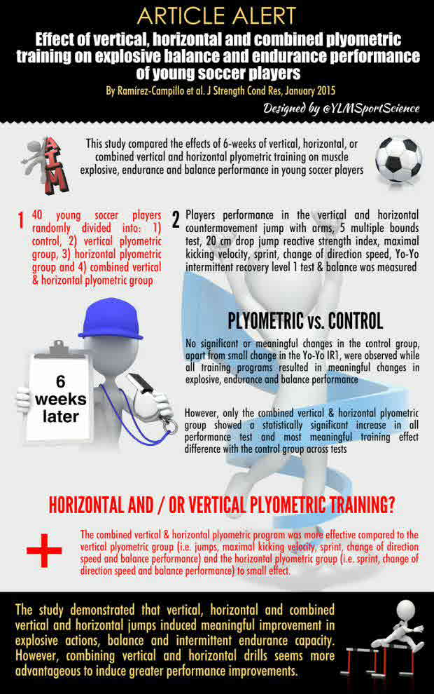 Effect of vertical, horizontal, and combined plyometric training on explosive, balance, and endurance performance of young soccer players