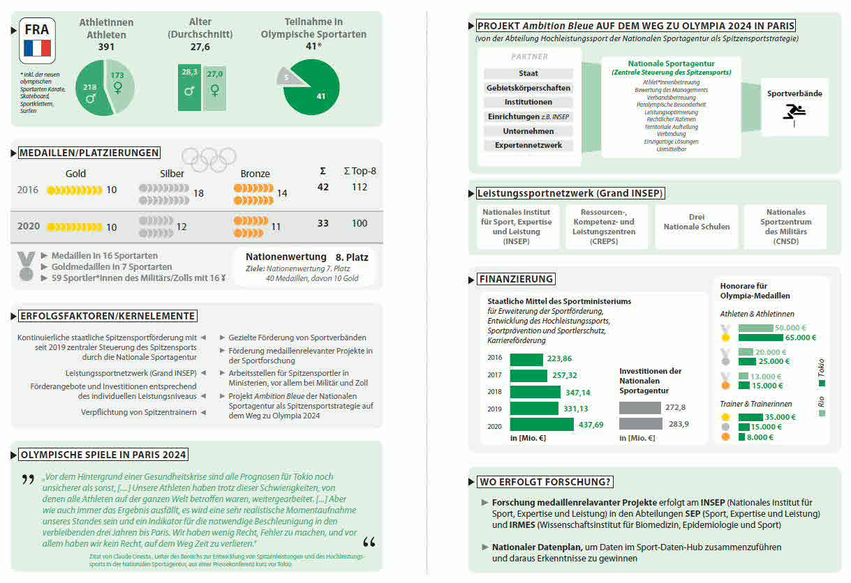 Analyse aktueller, auf den Olympiazyklus 2016-2020/21 bezogener Entwicklungen des nationalen Leistungssportkonzepts und -systems Frankreichs.