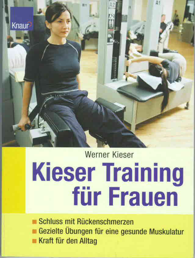 In jedem Trainingsgym von Kieser stehen 41 Trainingsmaschinen. Für jede Trainierende werden zehn davon ausgewählt, um ihre Problembereiche zu bearbeiten. Wie aber findet man heraus, was man trainieren soll und wie. Und worauf sollten Frauen besonders achten, wenn sie ihr Trainingsprogramm selbst zusammenstellen oder von einem Instrukteur erarbeiten lassen. Das vorliegende Buch soll Antworten geben auf diese Fragen. Dazu werden eingangs kurz gefasst theoretische Grundlagen erläutert, die für Kraft- bzw. Widerstandstraining bedeutsam sind. Daran schließt sich ein Exkurs in Anwendungsmöglichkeiten des Krafttrainings unter therapeutischen Gesichtspunkten (Rückenschmerzen, Osteoporose, Beckenbodentraining) an. Bevor insgesamt 40 Übungen an den Kieser-Trainingsmaschinen vorgestellt werden, stellt der Autor sein grundlegendes Trainingskonzept vor, das u. a. auf ein ein- bis zweimaliges Ganzkörpertraining pro Woche orientiert, eine Übungsdauer von 60 bis 90 Sekunden empfiehlt, bei denen die positiven und negativen Belastungsphasen jeweils mindestens vier Sekunden dauern und dazwischen die Muskeln für zwei Sekunden vollständig kontrahiert sind. Vermieden werden ruckartige, schnelle Bewegungen. Die Übungen sind bis zur lokalen Erschöpfung der betroffenen Muskeln zu trainieren, dem entsprechend sollte auch die gewählte Last eingestellt werden, wobei mit einem Satz geübt werden soll. Eine richtige Bewegungsausführung ist wichtiger als eine Erhöhung der Last. Zwischen den einzelnen Geräten bzw. Übungen sollte zügig gewechselt werden, damit auch das Herz und der Kreislauf von der Belastung profitieren.