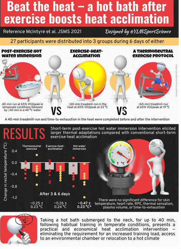 Conclusions: Compared with conventional short-term exercise heat acclimation, short-term post-exercise hot water immersion elicited larger thermal adaptations.