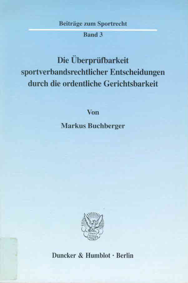 | Ausgabe: | Berlin: Duncker & Humblot, 1999. - 481 S. (Beiträge zum Sportrecht; Bd. 3) |