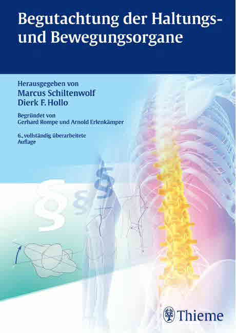 Ganz neu in dieser Ausgabe sind die Kapitel Bewertung von Hautschwielen, Einfluss der Polyneuropathie auf Unfallschäden der unteren Extremität, gutachterliche Einschätzung von Sehnenschäden, Gesundheitsstörungen am Knie und Facharztstandard der Endoprothetik von Hüfte und Knie. Die Herausgeberschaft dieser Auflage lag erstmals komplett bei Prof. Dr. med. M. Schiltenwolf (Arzt) und D. F. Hollo (Richter), die sie damit endgültig von den Initiatoren, Begründern und langjährigen Herausgebern Prof. Dr. G. Rompe und A. Erlenkämpfer übernommen haben, wie es bereits für die 5. Auflage geplant war. Bewährtes wurde übernommen, anderes neu gestaltet und wieder anderes wurde revidiert. Gute Lesbarkeit und Übersichtlichkeit der Kapitel waren den neuen Herausgebern ein wichtiges Anliegen. So wurden Kernaussagen und vertiefendes Wissen in den Kapiteln besonders hervorgehoben.