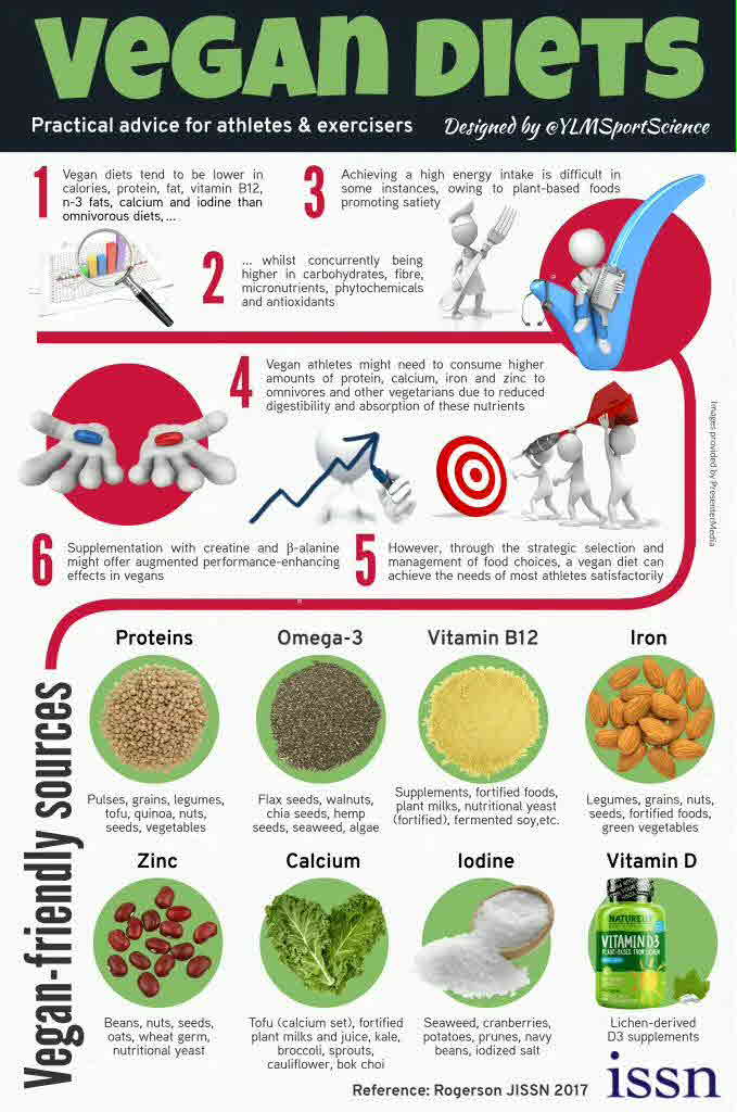 With the growth of social media as a platform to share information, veganism is becoming more visible,and could be becoming more accepted in sports and in the health and fitness industry. However, to date, thereappears to be a lack of literature that discusses how to manage vegan diets for athletic purposes. This article attemptedto review literature in order to provide recommendations for how to construct a vegan diet for athletes and exercisers.While little data could be found in the sports nutrition literature specifically, it was revealed elsewhere that veganismcreates challenges that need to be accounted for when designing a nutritious diet. This included the sufficiency ofenergy and protein; the adequacy of vitamin B12, iron, zinc, calcium, iodine and vitamin D; and the lack of thelong-chainn-3 fatty acids EPA and DHA in most plant-based sources. However, via the strategic management of foodand appropriate supplementation, it is the contention of this article that a nutritive vegan dietcanbe designed toachieve the dietary needs of most athletes satisfactorily. Further, it was suggested here that creatine andß-alaninesupplementation might be of particular use to vegan athletes, owing to vegetarian diets promoting lower musclecreatine and lower muscle carnosine levels in consumers. Empirical research is needed to examine the effects of vegandiets in athletic populations however, especially if this movement grows in popularity, to ensure that the health andperformance of athletic vegans is optimised in accordance with developments in sports nutrition knowledge.