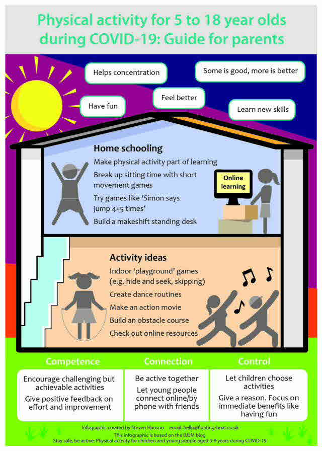 Physical activity for children and young people aged 5-18 years during COVID-19. Stay safe; be active