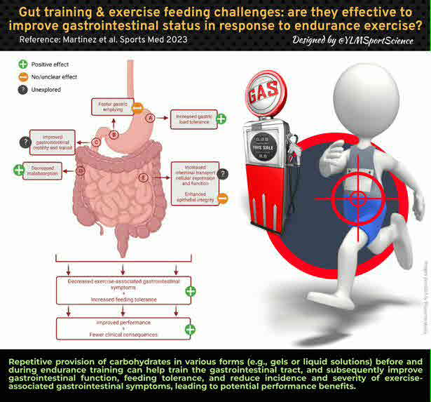 Conclusions: Overall, gut-training or feeding-challenge around exercise may provide advantages in reducing gut discomfort, and potentially improve carbohydrate malabsorption and Ex-GIS, which may have exercise performance implications.