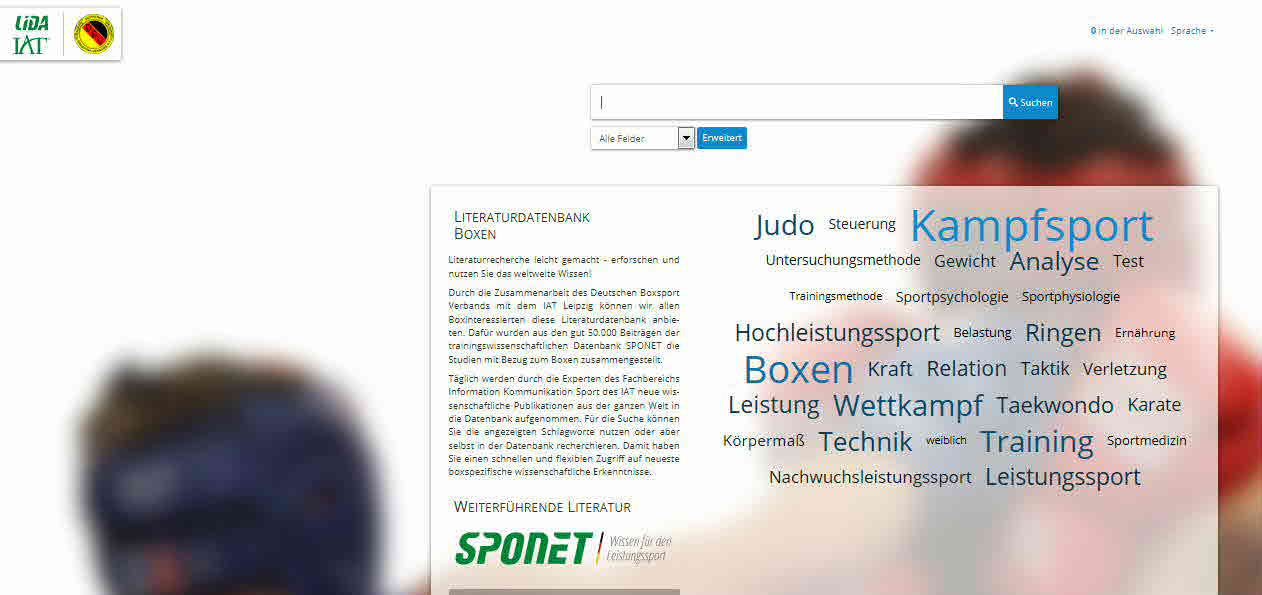Durch die Zusammenarbeit des Deutschen Boxsport Verbands mit dem IAT Leipzig können wir allen Boxinteressierten diese Literaturdatenbank anbieten. Dafür wurden aus den gut 50.000 Beiträgen der trainingswissenschaftlichen Datenbank SPONET die Studien mit Bezug zum Boxen zusammengestellt.