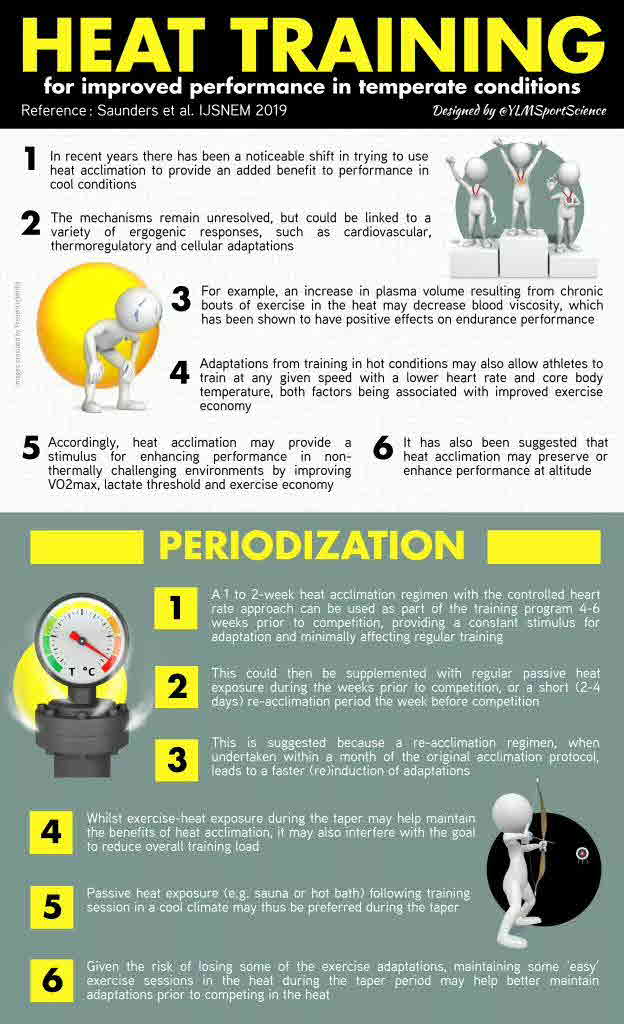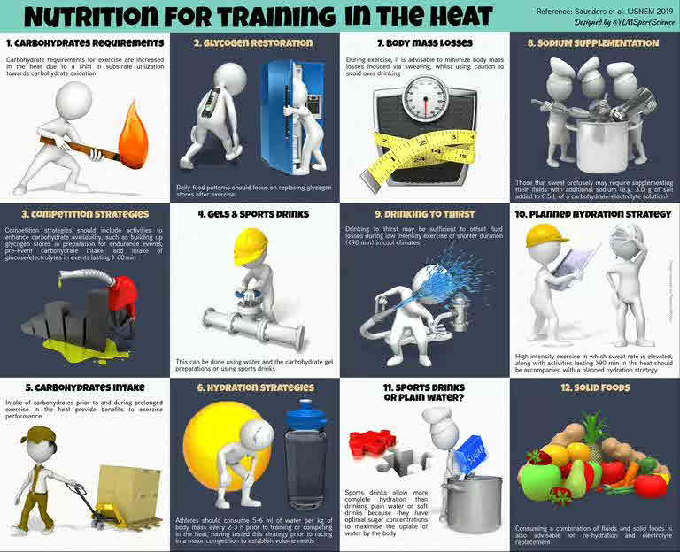High-level athletes are always looking at ways to maximize training adaptations for competition performance, and using altered environmental conditions to achieve this outcome has become increasingly popular by elite athletes. Furthermore, a series of potential nutrition and hydration interventions may also optimize the adaptation to altered environments. Altitude training was first used to prepare for competition at altitude, and it still is today; however, more often now, elite athletes embark on a series of altitude training camps to try to improve sea-level performance. Similarly, the use of heat acclimation/acclimatization to optimize performance in hot/humid environmental conditions is a common practice by high-level athletes and is well supported in the scientific literature. More recently, the use of heat training to improve exercise capacity in temperate environments has been investigated and appears to have positive outcomes. This consensus statement will detail the use of both heat and altitude training interventions to optimize performance capacities in elite athletes in both normal environmental conditions and extreme conditions (hot and/or high), with a focus on the importance of nutritional strategies required in these extreme environmental conditions to maximize adaptations conducive to competitive performance enhancement. Abstract from author